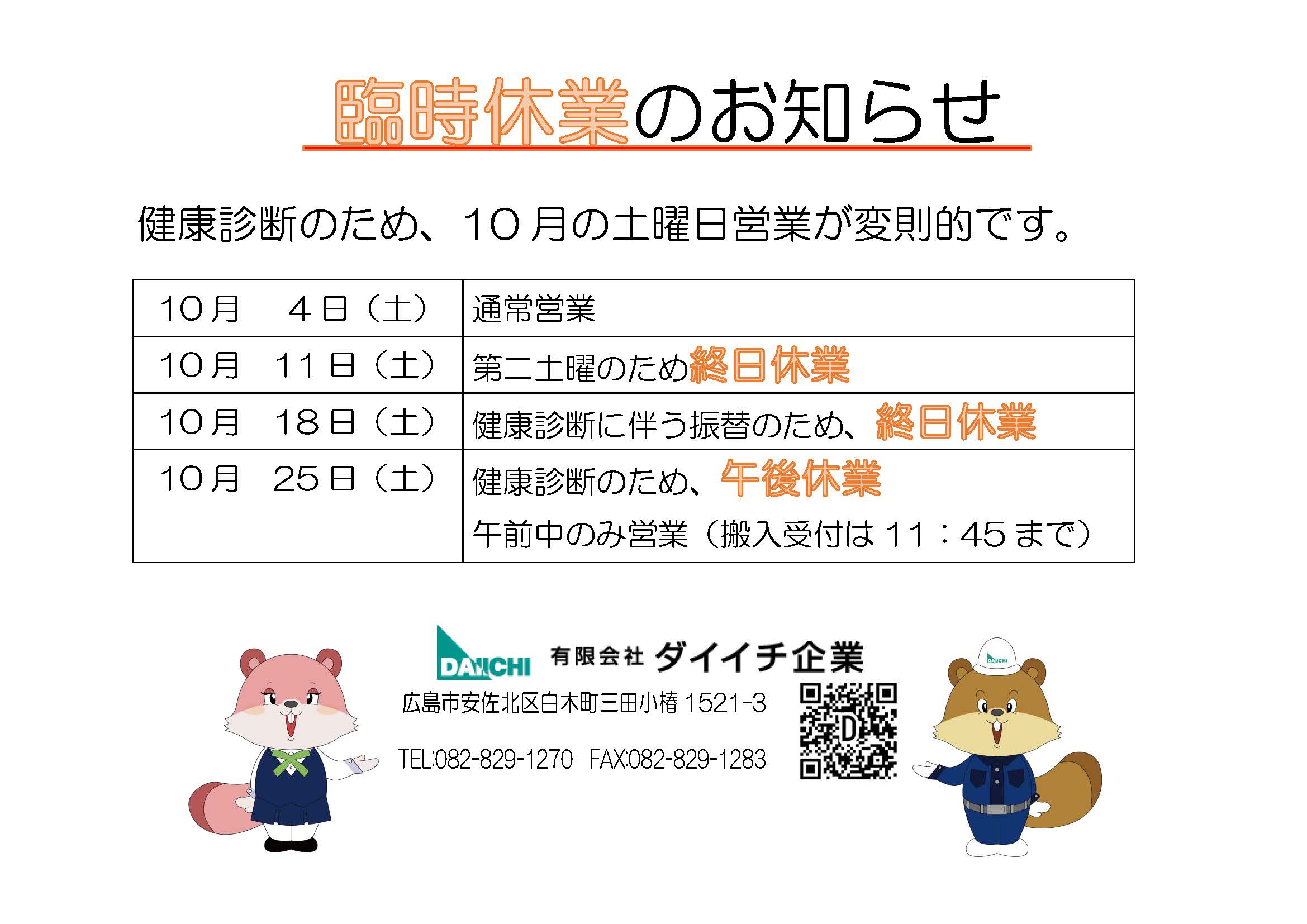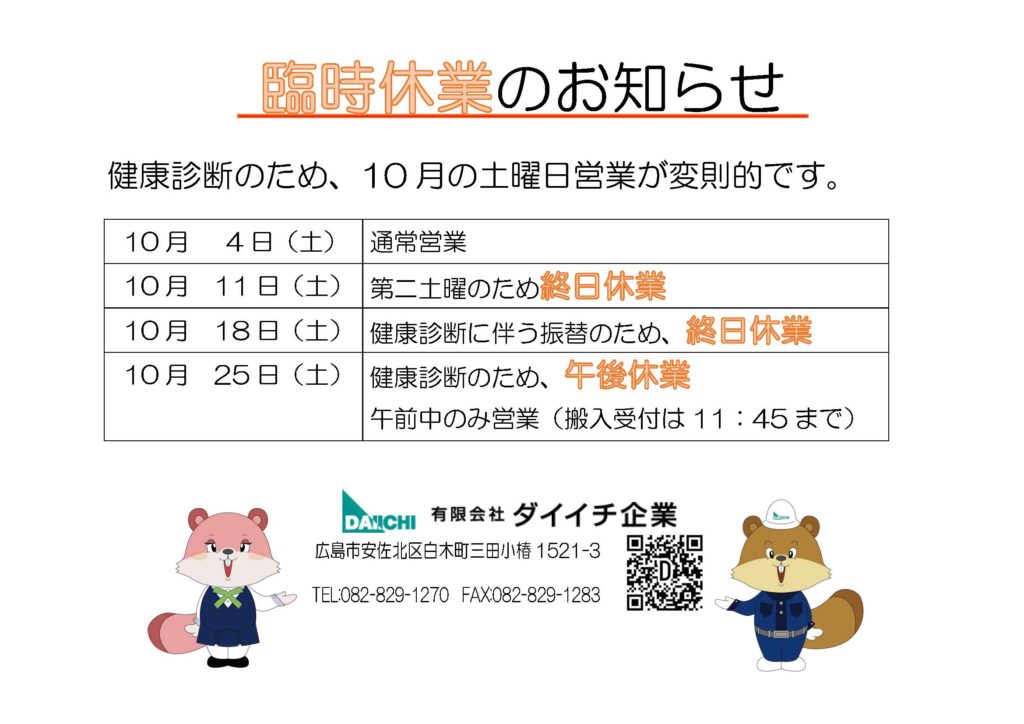 臨時休業のお知らせ